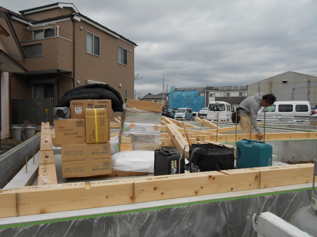 無事完了です。土台を設置しないと上棟できないので、事前に土台設置します