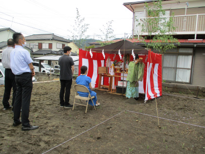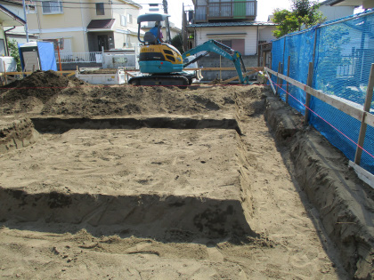 やり方(建物の位置や高さの基準となる作業)を出し、