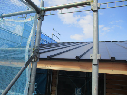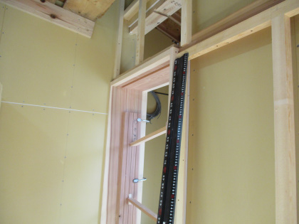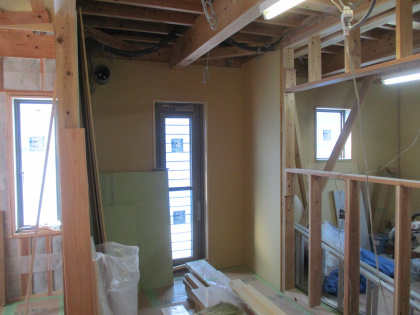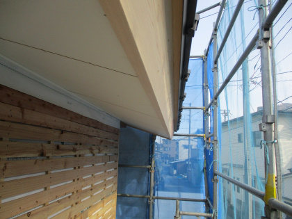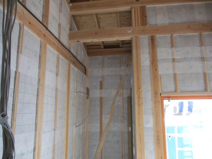 壁断熱工事完了! 投稿日: 2021年3月11日 壁の断熱工事完了です。 いつも通り、パンパンに吹き込まれています。 壁のボード貼りが、進んできています。 屋根のガルバリウム鋼板の施工も進んできています。 軒天や破風の施工も完了しました。 建具枠の施工が始まっています。 大工さんが1本1本溝などを加工し、組み上げていきます。 きれいに納められています。
