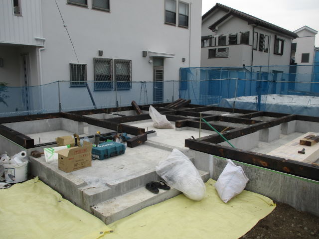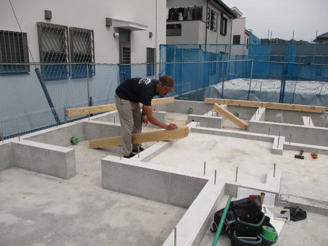 1階の柱、梁と順序良く、段取り良く、組み上げていきます!