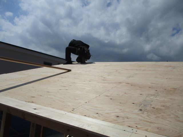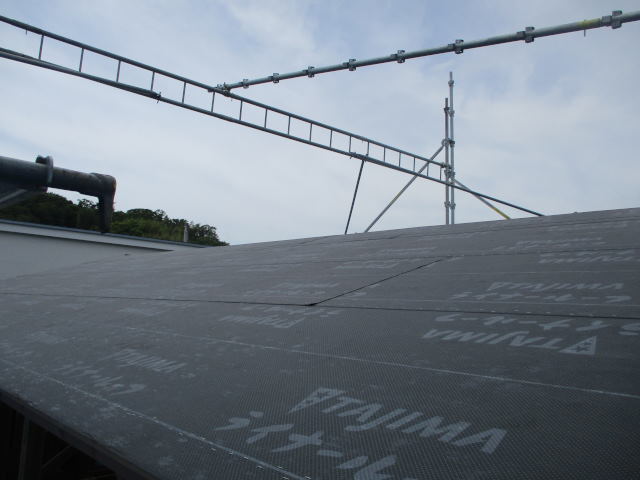 次の日の朝一番で、屋根のルーフィングの施工も完了です。