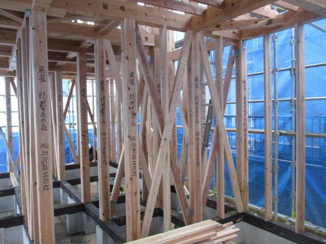サッシ取付! 投稿日: 2025年6月27日 屋根のルーフィングも施工されました。 筋交い・間柱や金物の取付も進んできています。 床下配管の作業も進んできています。 サッシ下地も施工され、サッシの取付が始まっています。