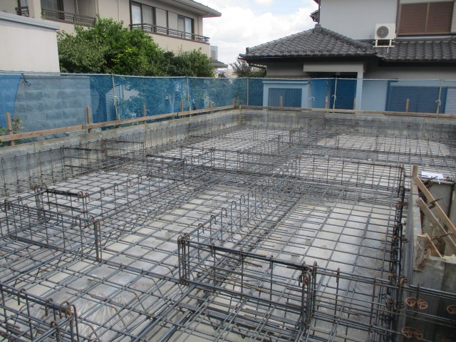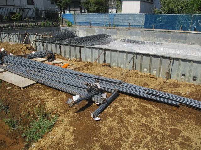 捨てコンも完了し、外枠も組まれ、鉄筋が搬入されました。