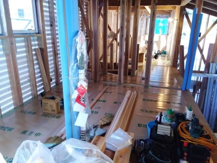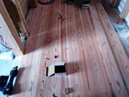 床、進んいます 投稿日: 2026年1月17日 今週は、先週に引き続き床貼り作業を進めています。 2階はだいたい終わりました。 1階も7割くらいは終わっています。 養生前に撮影出来ました。 いろんな道具が映り込んでおりますが、 大工さんたちはいろんな種類の道具を持っていて、いつも関心します。 大工さんによって持っている道具の種類も違うので、 たまに「これは何に使うんですか?」と聞いたりもします。 あ、これはブログのネタになりますね。 来週は床が終わり次第、 窓枠や階段を作っていきます。 引き続き、ご安全に。