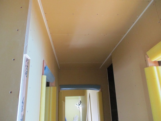 天井ボード貼りも進んできました。