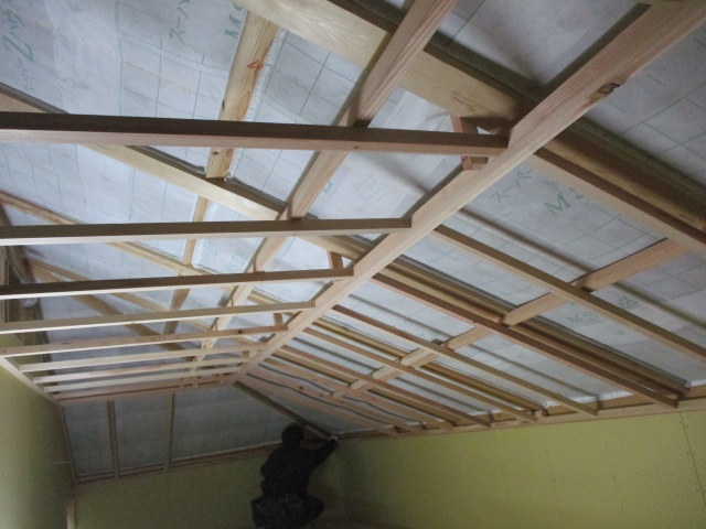 外部は軒天下地、軒天杉板の施工が始まりました!!