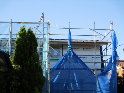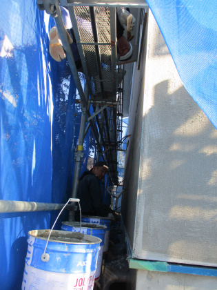 外部の方はモスタル下地のフェルト・ラス網の施工が