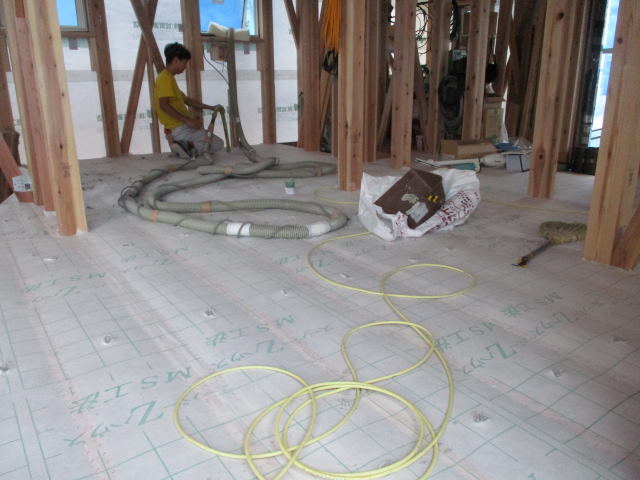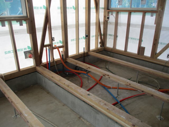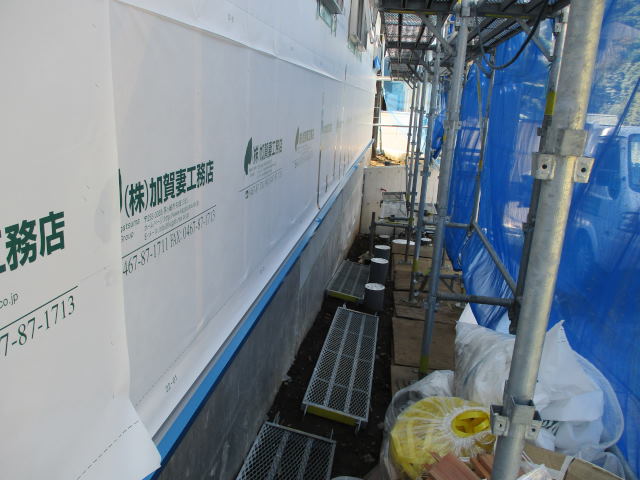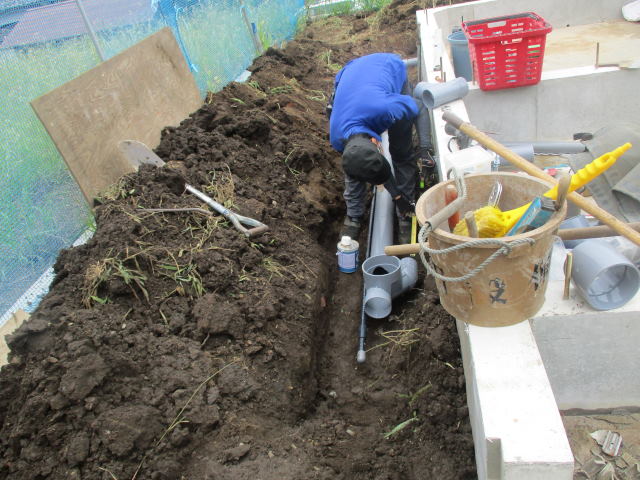 外まわりは水道屋さんが給排水の先行配管の作業を行っています。