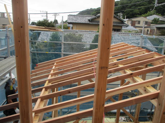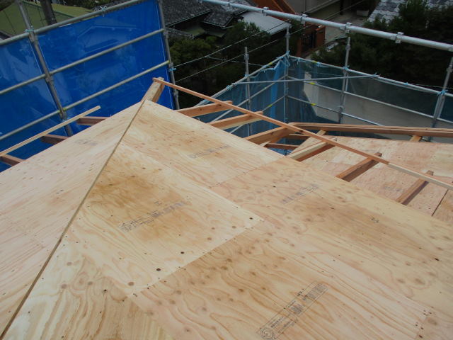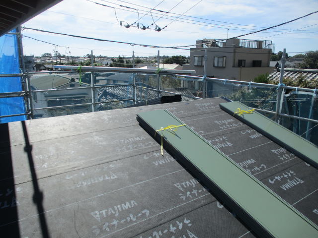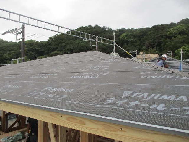 屋根屋さんにも来てもらい、ルーフィングも施工してもらいます。