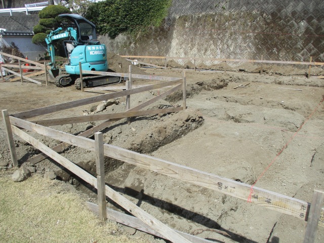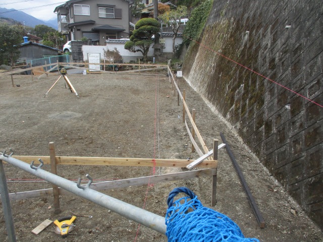 建物の位置や高さなどの基準となる、やり方を出しました。