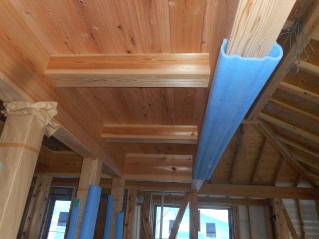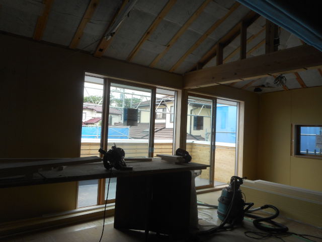 2階の天井は、セルロースの断熱の為の下地工事も行っています
