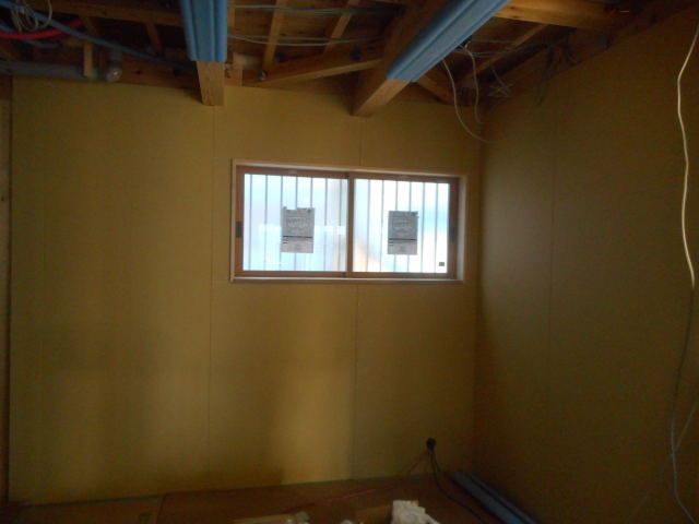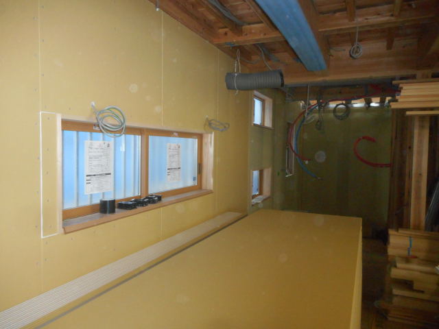 今週断熱完了したので、早くも一部石膏ボード張り始まりました!