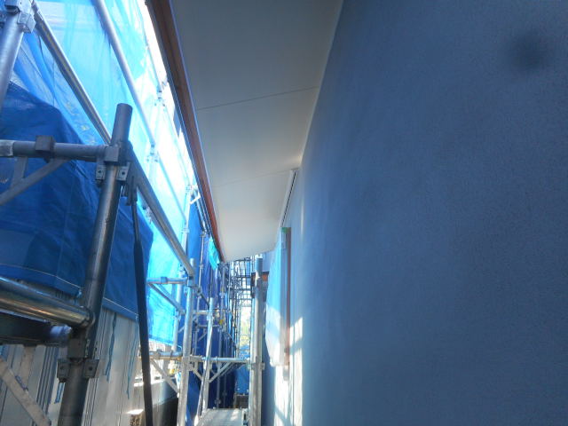 破風・軒天も塗装が完了してます!このあと外壁左官仕上げ行い、タッチアップで