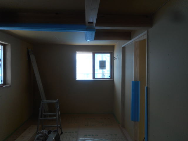 今週断熱完了したので、早くも一部石膏ボード張り始まりました!