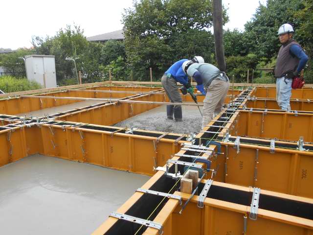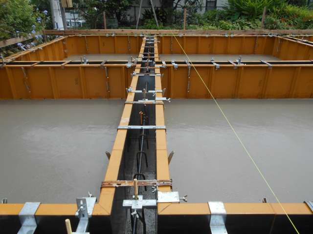 梅雨明け前で雨が心配されましたが、曇りの予報で無事打設できました