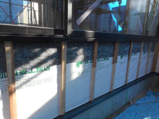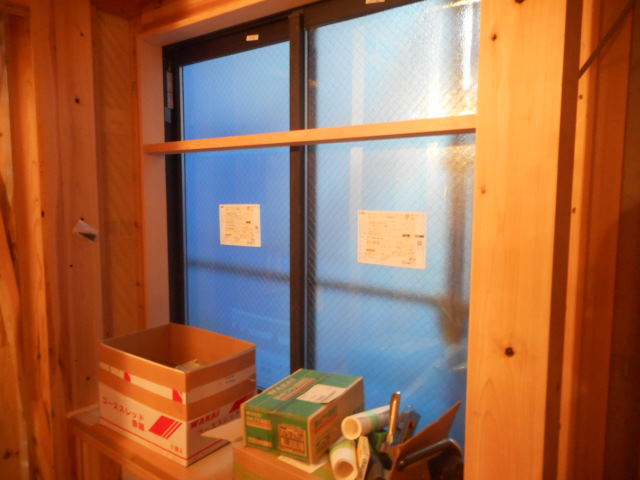 サッシ枠も搬入しました。 サッシにあわせて、窓台設置していきます
