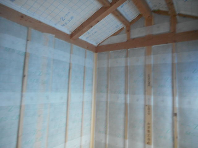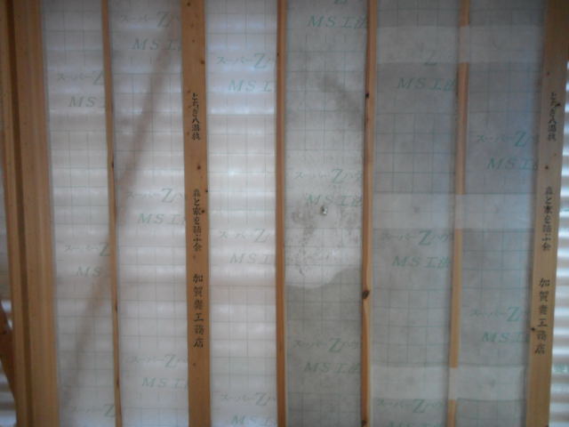 2階の方は、貼りあがりました。住宅の場合きれいに貼るため、逃げや遊びの余裕が必要なのですが