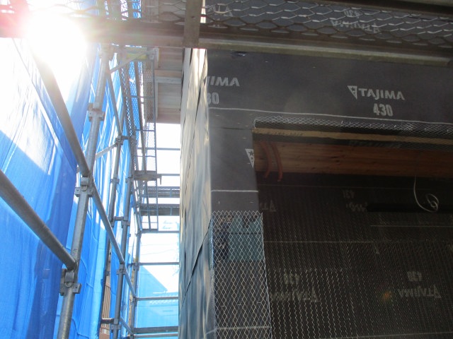 外部はフェルト・ラス網の作業が始まりました。