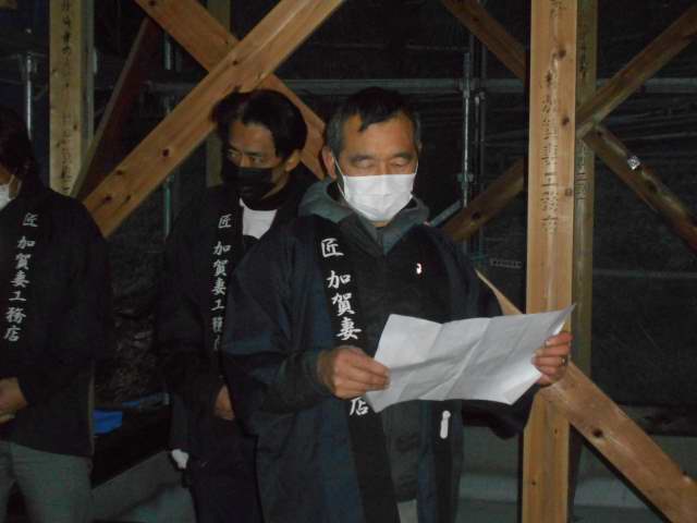 夕方上棟式行いました。おめでとうございます