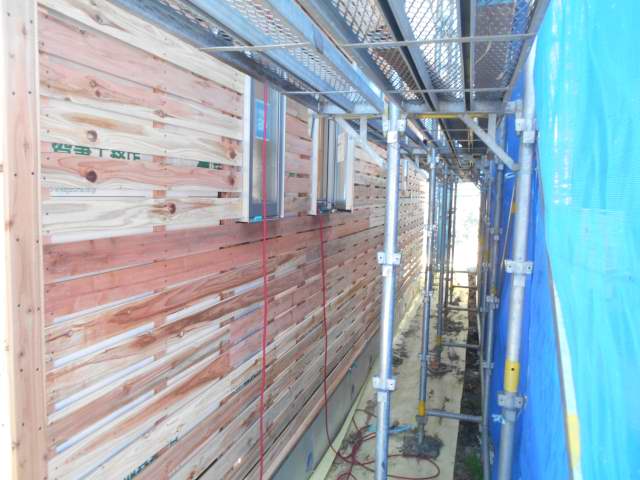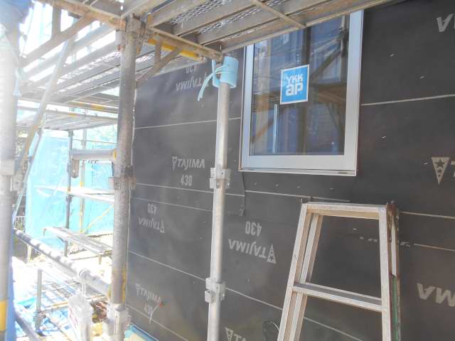 サッシの取り付けも終わり、アラシ工事行っています