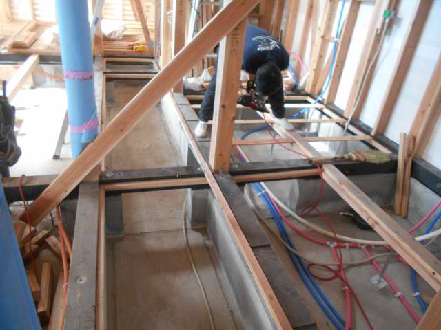 1階の床組工事行っています