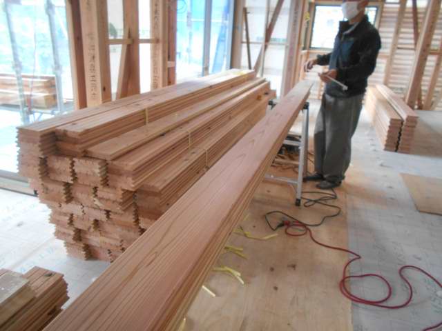次の日には床材搬入、早速工事始めます
