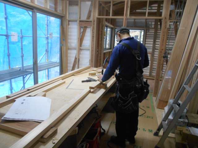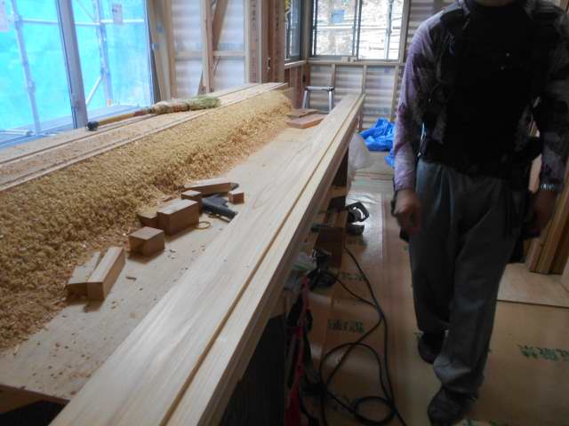 枠の加工始まりました。既製品でなく溝等も大工さんが加工していきます