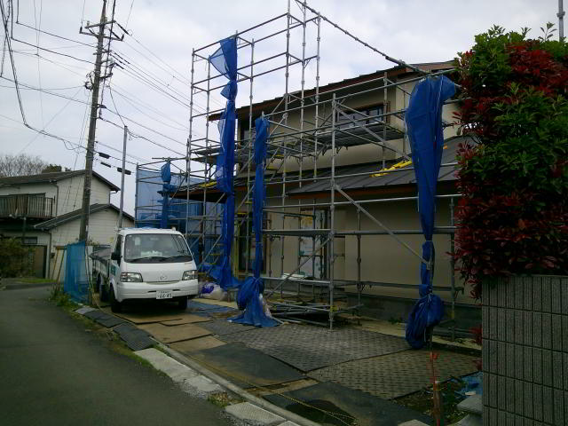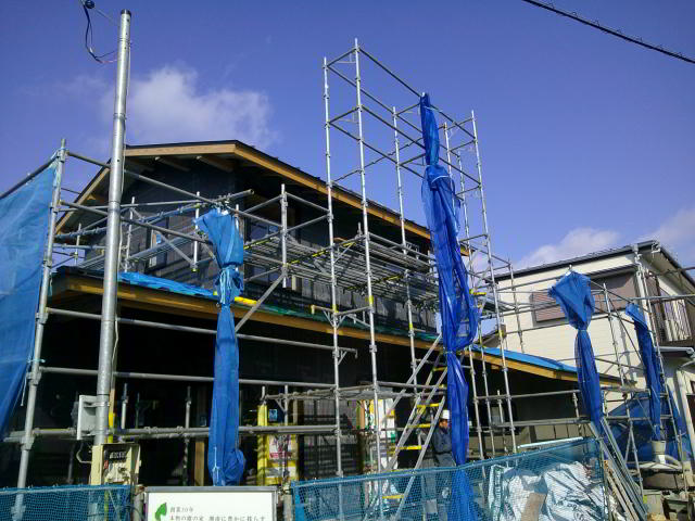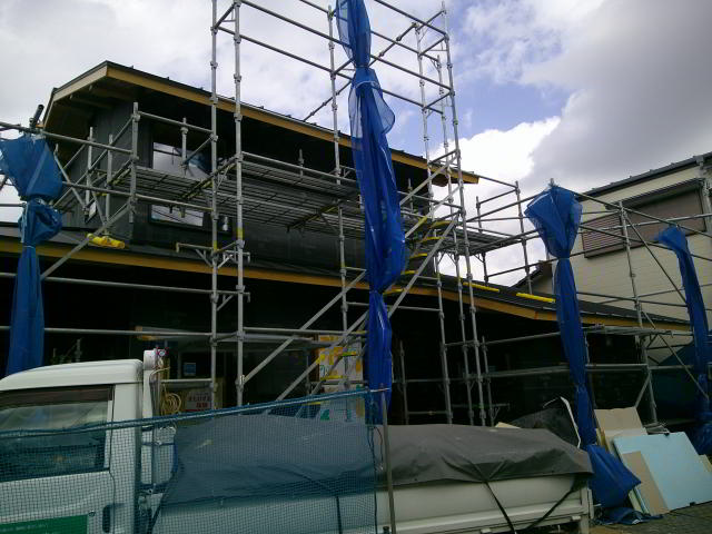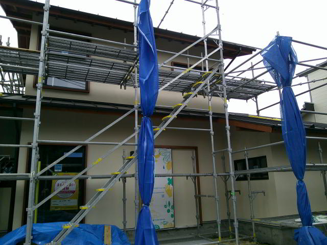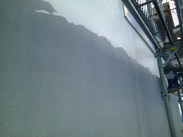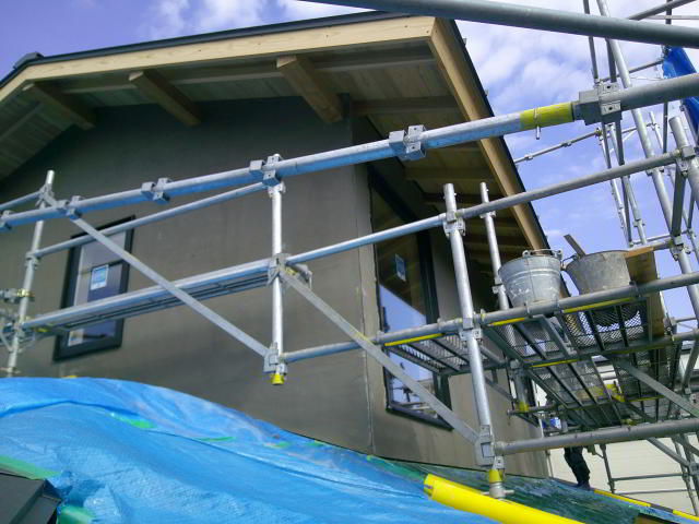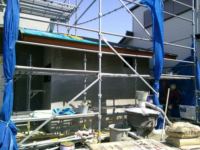今日から外部の仕上げ工事始めています まずは上擦りを行ってから仕上げ塗りを