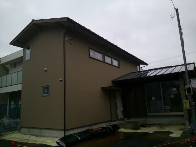 外部はモルタル中塗りまで完了・・・しばらく養生期間で仕上げ工事になります
