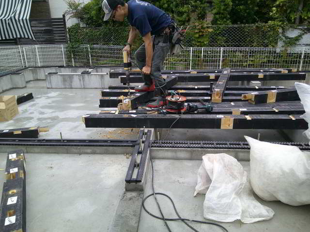 内部は根太組みまで進みました