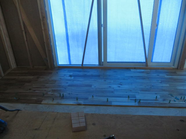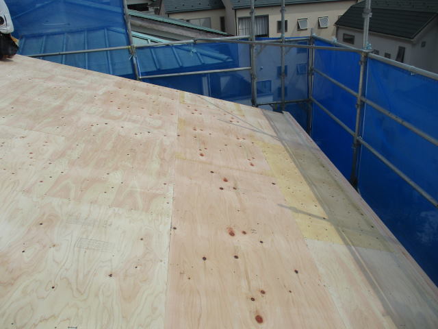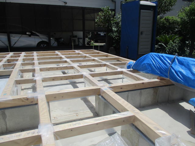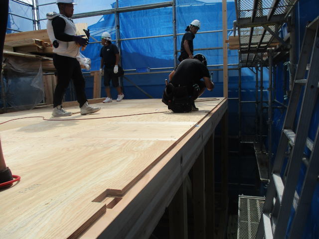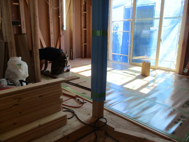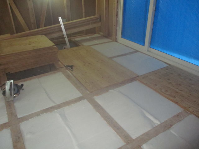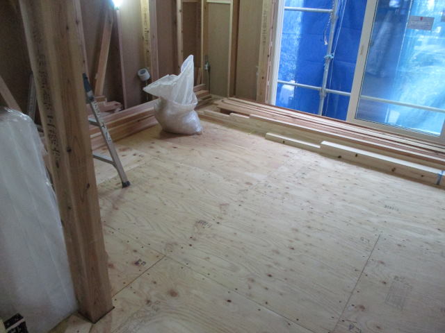 1階床断熱工事も完了し、下地ベニヤの施工も完了です。