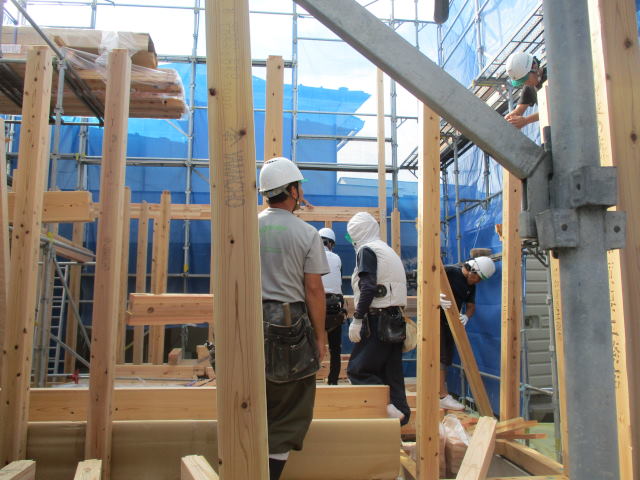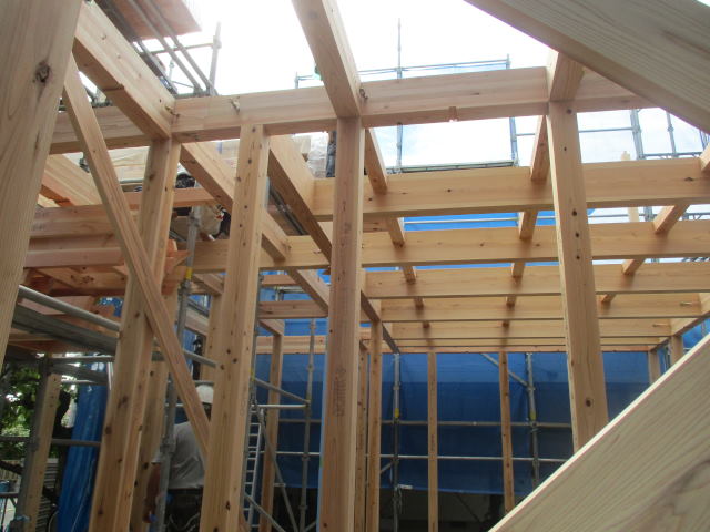1階の柱・梁と順序良く、段取り良く組み上げていきます。