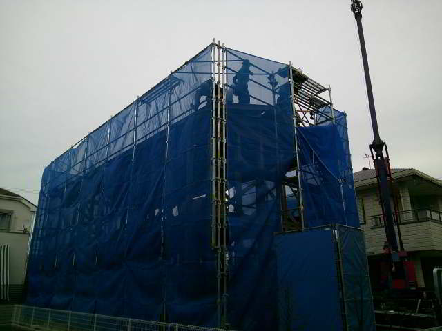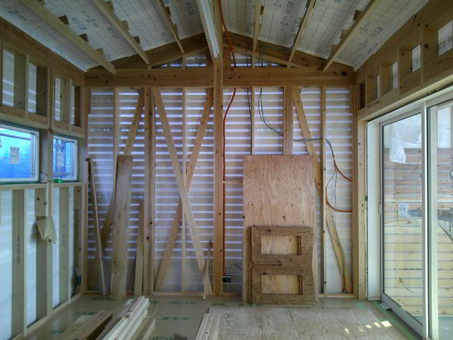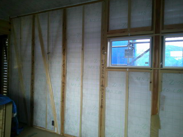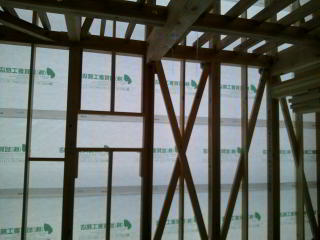 外部の下地工事も終わり、透湿防水シートまで施工しています