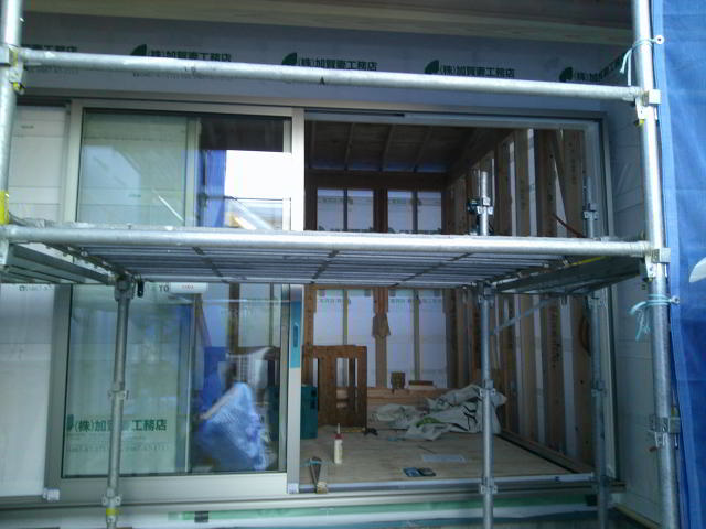 大工さんの方は、サッシの木戸袋や庇工事を始めています