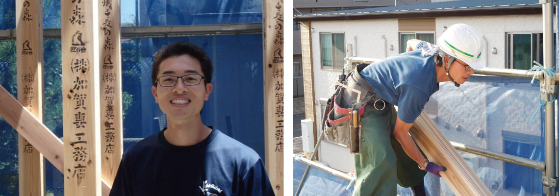 親方の岡野大工とは、私が入ってきた時から丁寧に時には厳しく時には優しく教えてくださっているので毎日が楽しく、勉強の日々です。仕事以外でもとても面倒を見てもらっていることにとても感謝しています。