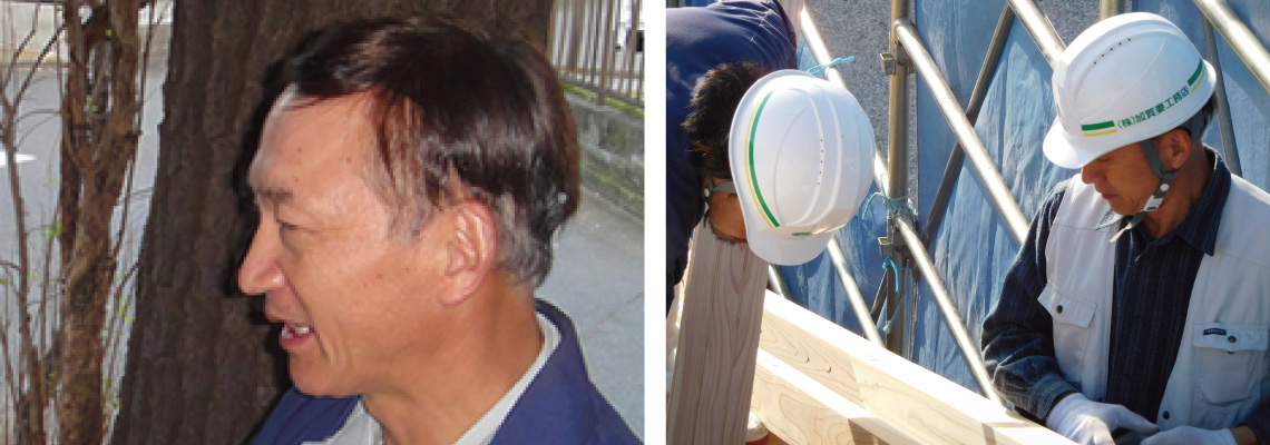 先般、お蔭様で、長男の就職が決まりましたと、きちんと挨拶が出来る加賀妻工務店で育った最初の大工さんです。毎日朝目が覚めて、大工仕事が出来る事が楽しくて、楽しくて、と言ってくれます。弟子(小林大工)を育ててくれました。性格は真面目、誠実。