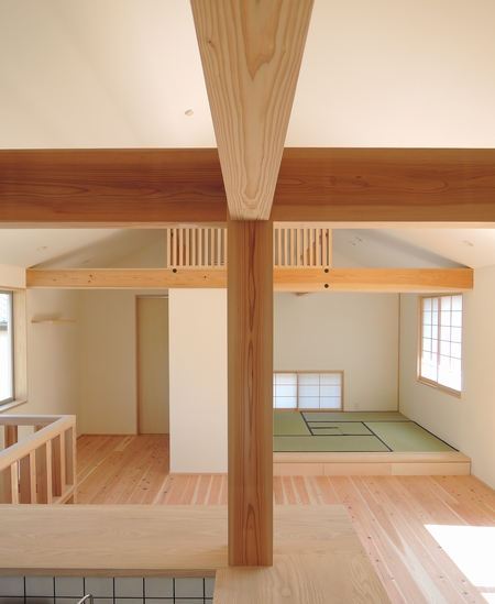 「碁盤目の梁組・チムニーある住まい」