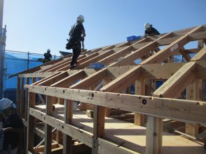 きっと、ハウスメーカーのように外注の大工やフレーマーでは、加賀妻の家の上棟が1日では終わらないと思います。