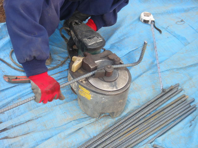 鉄筋の加工 投稿日: 2013年2月25日 基礎で使う鉄筋は、だいたい10㎜、13㎜、時には16㎜です。 だいたいの物は、工場で作成して、現場に搬入しますが、 接続部分などは、現場で加工します。 10㎜だと何とか手で曲がりますが、綺麗には加工できません。 そこで機械を使います。 機械を使えば物の数秒で加工できます。 昭和の初期などは機械も無かったので、無筋の基礎も多くあったそうです。 今では考えられませんが、大きい地震が来ないことを願います。 もしご心配で有れば、是非耐震診断受けて下さいね。