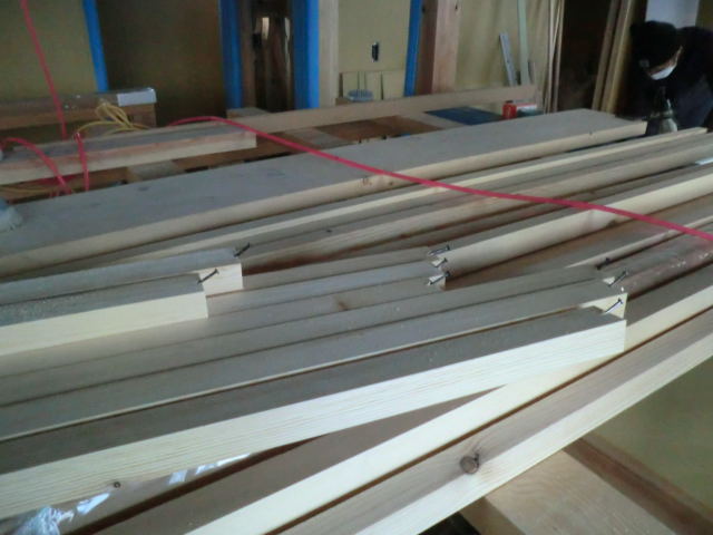 実は・・・材料が長いと、一人で作業するのが大変です。そこで何とか一人でも作業