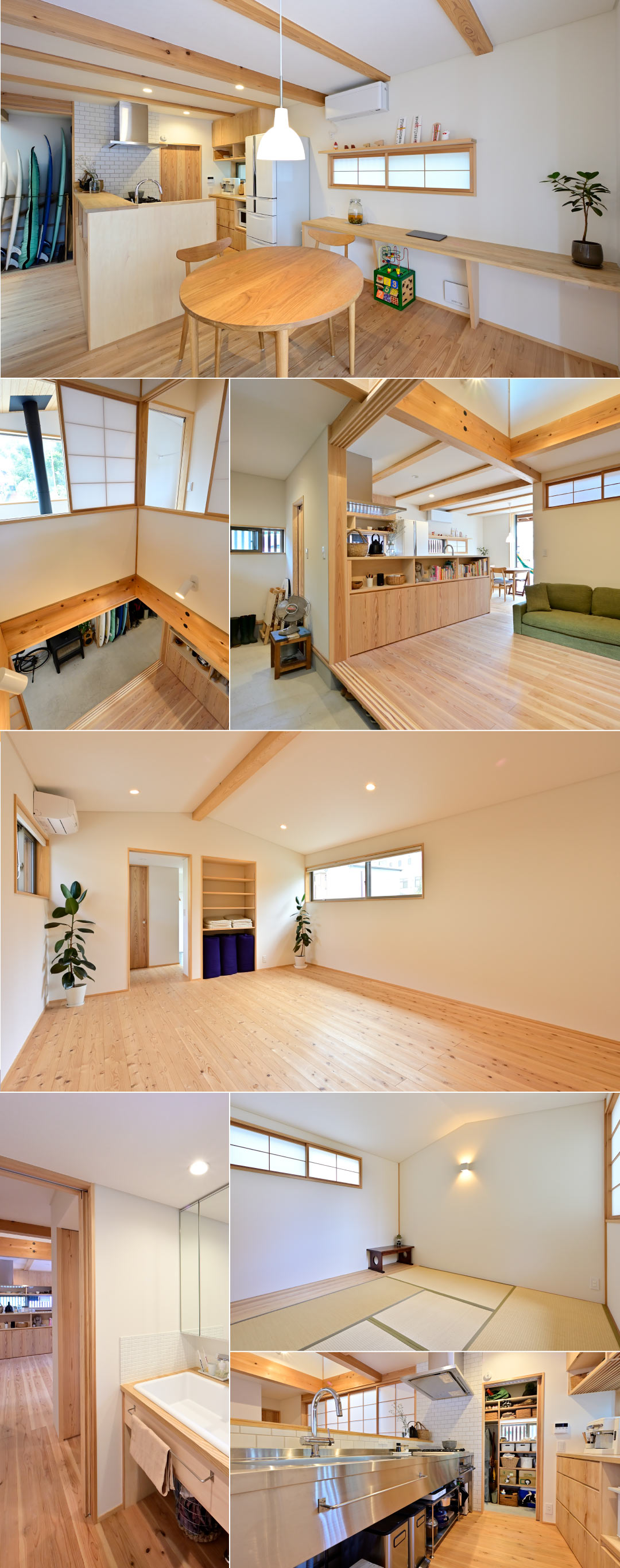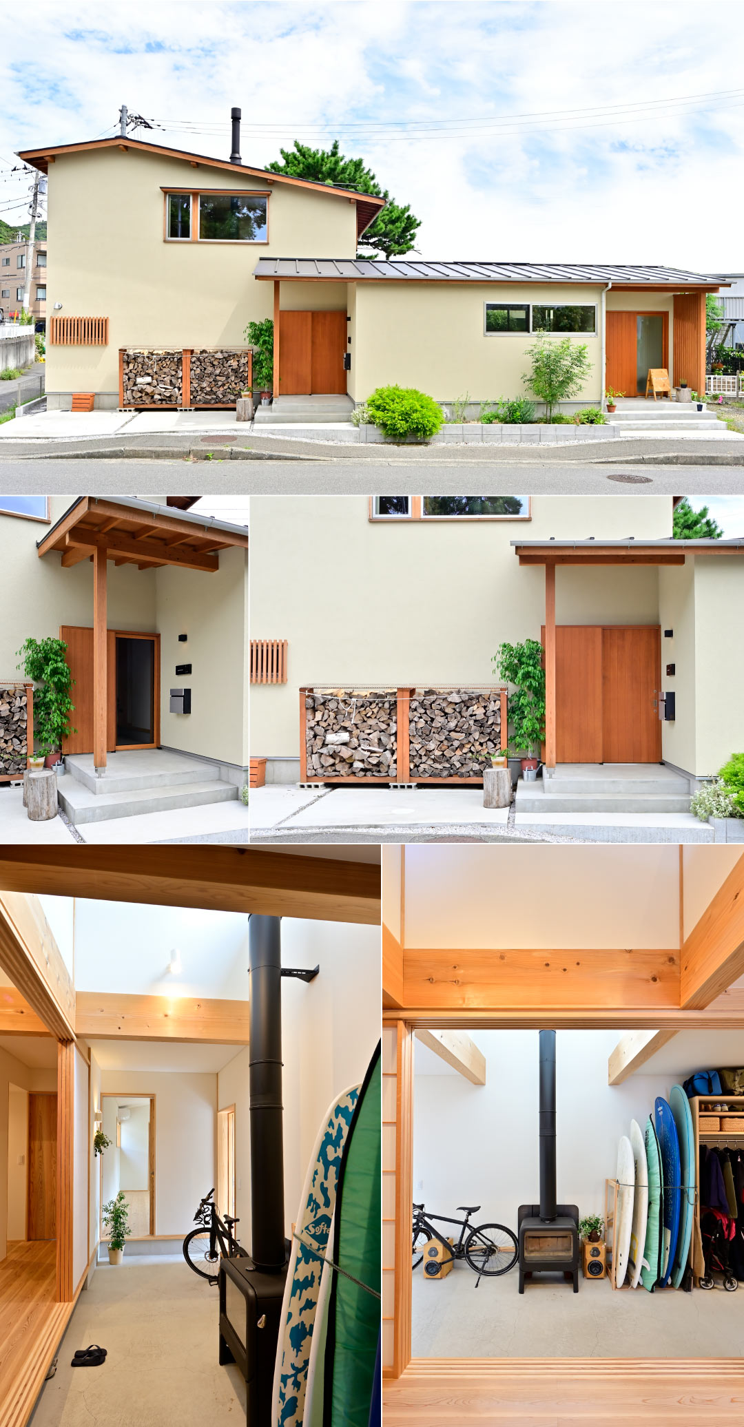 大磯町の1号線から少し引いた小川沿いに建ちます。広い土間に薪ストーブ、居間と薪ストーブの繋がり、川沿いの景色への視線の抜け、また、催し物を出来るようなサロンのスペースが欲しいとのご要望がありました。