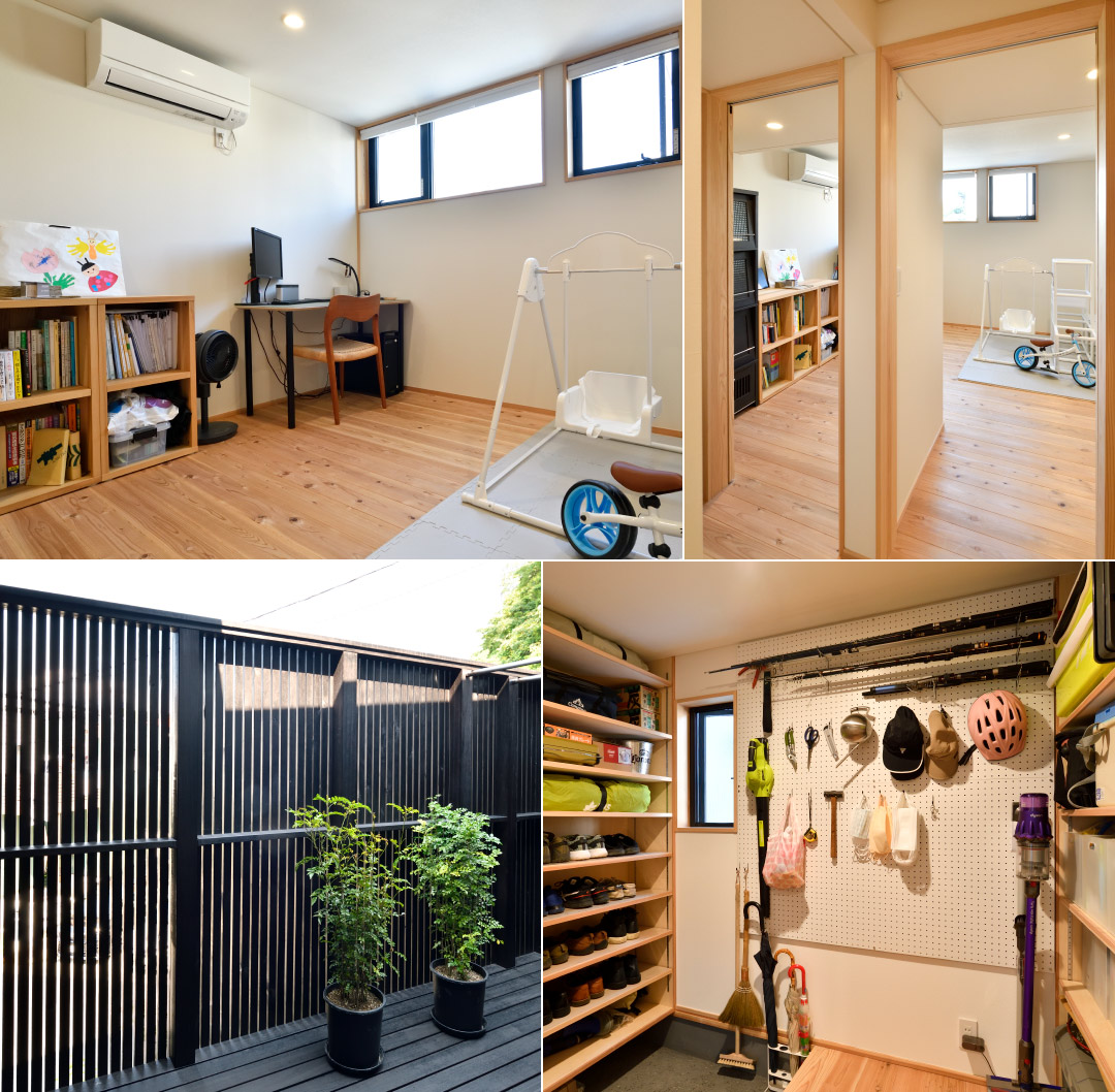 水回りは北側に森を眺められる位置に、1階の北側は土間収納を設えました。敷地の特性を読み、L字プランにして、それぞれの方向へ、抜け感を生かした住まいになったと思います。