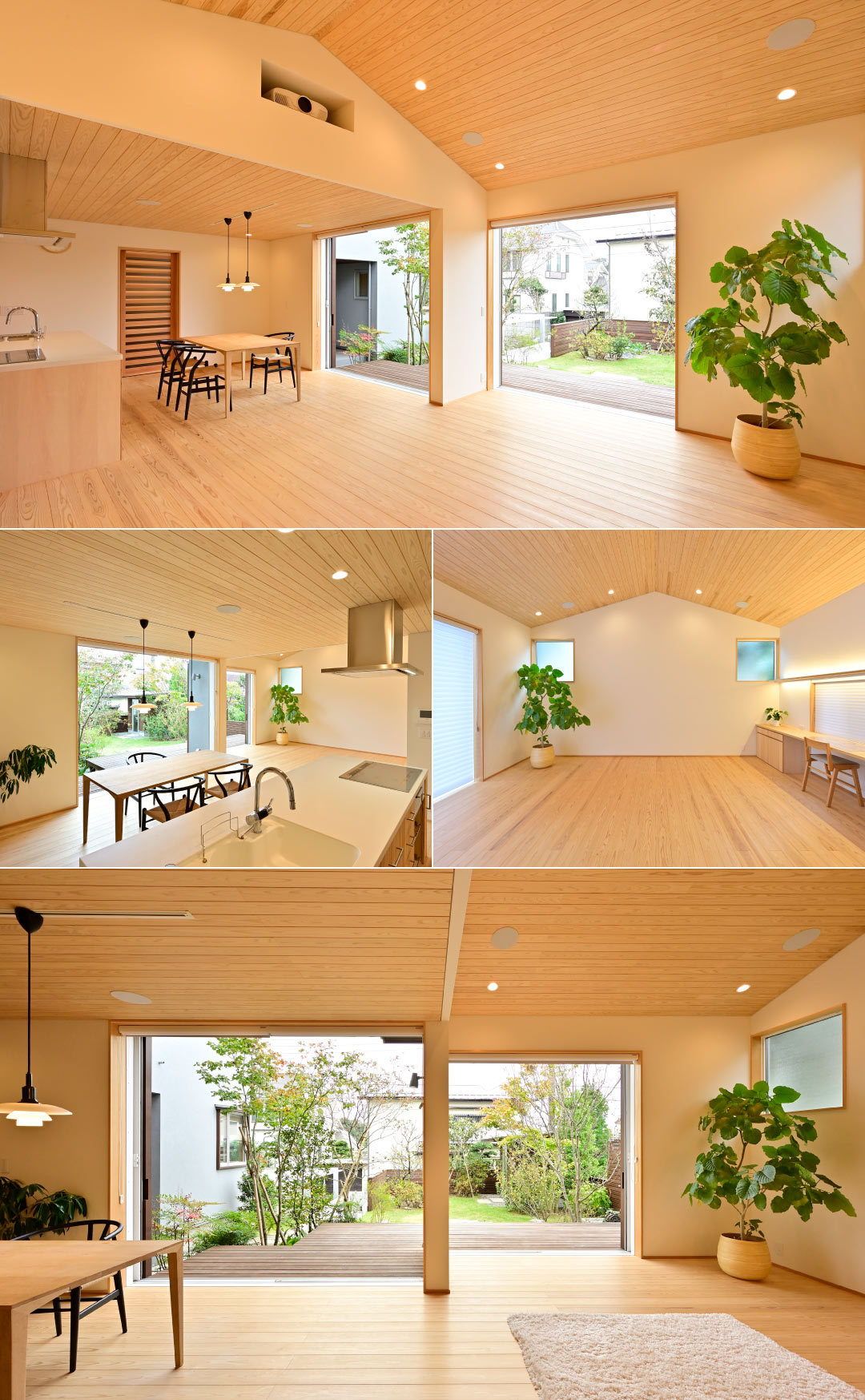 家族のくつろぎの間・仕事をする間は、離れていながら、庭を介してつながりのある、豊かな住まいとなっています。