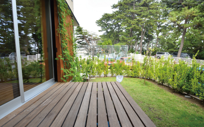 | お子さまの誕生を機に、家づくりを考えはじめたという道川さん。「私がアレルギーを持っていることもあり、子どもの健康を考えた家づくりをしたいという希望がありました」と奥さま。住宅展示場をまわってみたけれどピンとくる家がなく、どこに頼むか迷っていたところで出会ったのが加賀妻工務店でした。「知人からすすめていただき、完成見学会に参加しました。木のぬくもりが気持ち良く、住む人の体に優しい素材を使った住まいに魅力を感じました」。土地探しの段階から相談に乗ってもらい、海を見晴らす二宮の高台の土地を購入。「1階からも2階からも海が見えるプランを提案していただきました」。階段を上ると、目の前に広がるのは松林に彩られた海景色。大きな一枚窓が、映画のスクリーンのように風景を切り取ります。 |