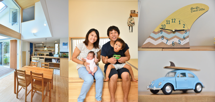 寄せ返す波の音がBGMとなる、海辺の閑静な住宅街に建つ道川様邸。無垢の木のぬくもりに包まれた住まいは、思わず深呼吸したくなる気持ち良さです。南側に面して大きく設けられた窓から、日々表情を変える海を見晴らしながら、どのような暮らしを育まれているのでしょうか。ご夫妻にお話を伺いました。