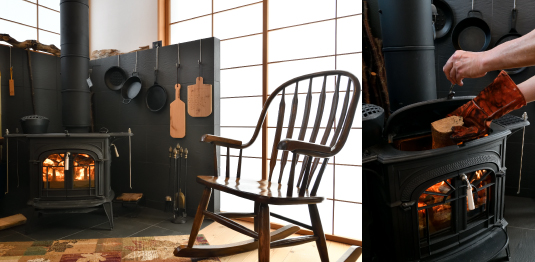 | 若林邸のリビングにはもうひとつ、さりげなく存在を主張するものがあります。それは、ご主人自慢の薪ストーブ。スイッチひとつのエアコンなどと比べて手間はかかりますが、「その手間がいい」と嬉しそうに話してくれました。かたわらのロッキングチェアに座って時おり薪をくべながら、好きなレコードを聴き、揺れる炎を眺めるひと時は何よりも贅沢な時間。薪ストーブを利用した料理も趣味のひとつに加わりました。奥さまよりもひと足早く退職されたご主人は、地域のコミュニティ活動にも積極的に参加。「私もこれからの大磯での楽しみを探したいと思っています」と奥さま。理想の終の住処を得て、ご夫妻の暮らしはさらに豊かに広がっていきます。 |