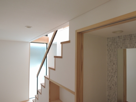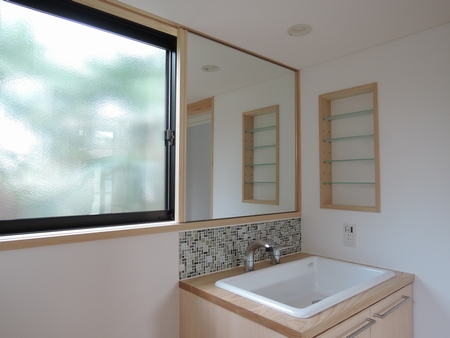 明るくできるよう、サッシ前の鏡を引戸で可動にしています。