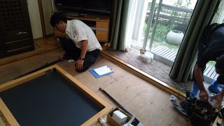 堀コタツ廻りの畳を作り直しますので畳屋さんが寸法採っています^^