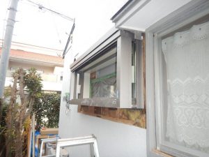 キッチン出窓修繕工事 投稿日: 2019年2月19日 既存木製出窓が劣化したため、アルミ出窓に改修しました。 木部部分が劣化し、躯体部分も一部腐食していました。 出窓廻り外壁を撤去し既存出窓を解体後、アルミ出窓を取り付けました。 サッシ廻りをモルタルで補修後、塗装して完成です。 (中山)