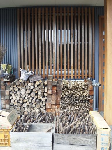 きれいに仕分けされた薪は玄関先でオブジェのようです。